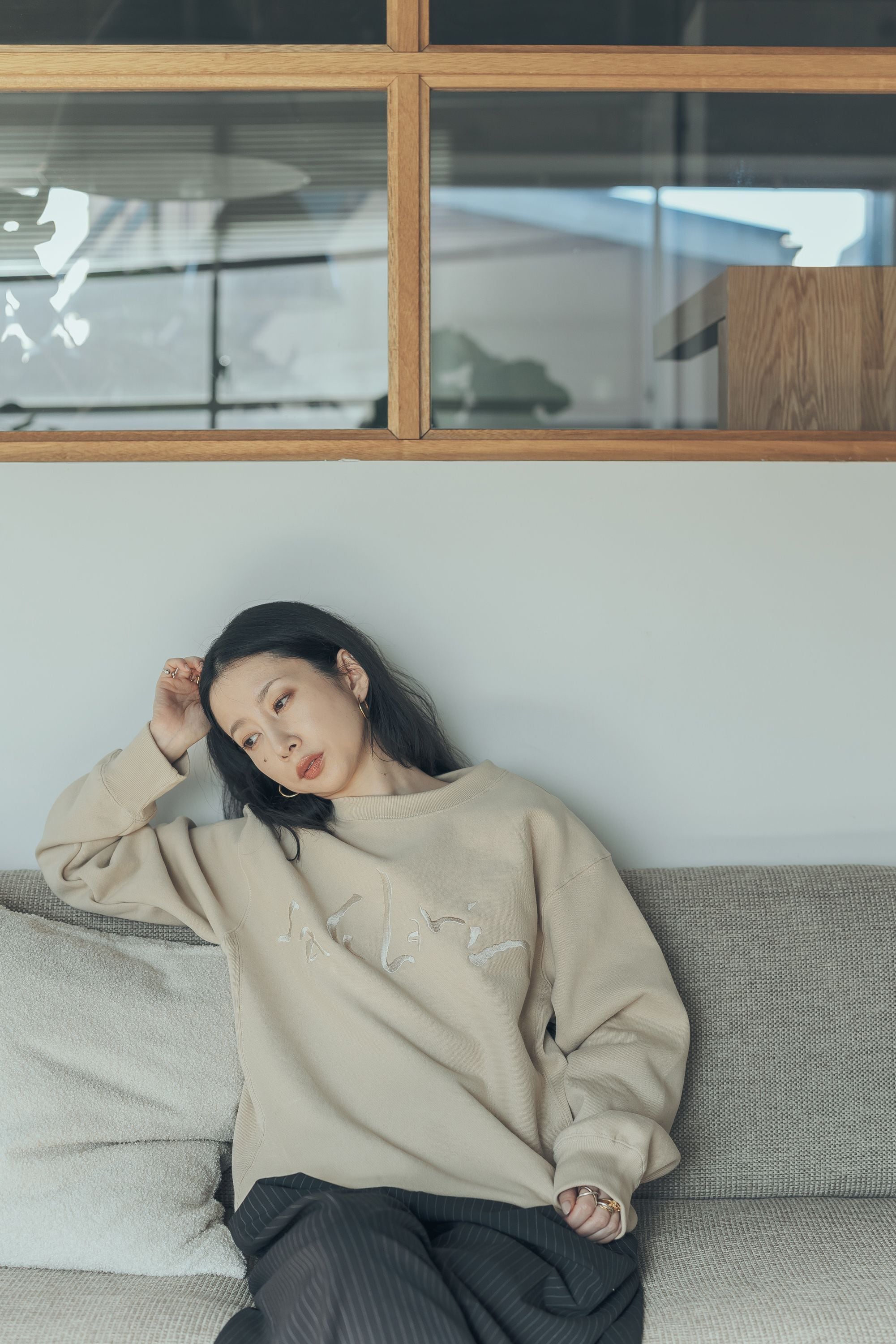 定番のbeigeではなく、ベージュとグレージュの間のような色味が洒落気抜群。