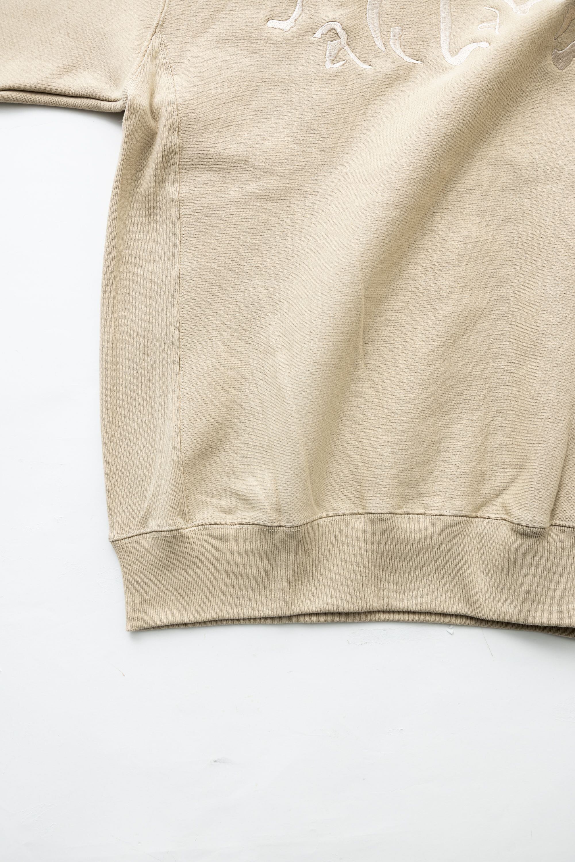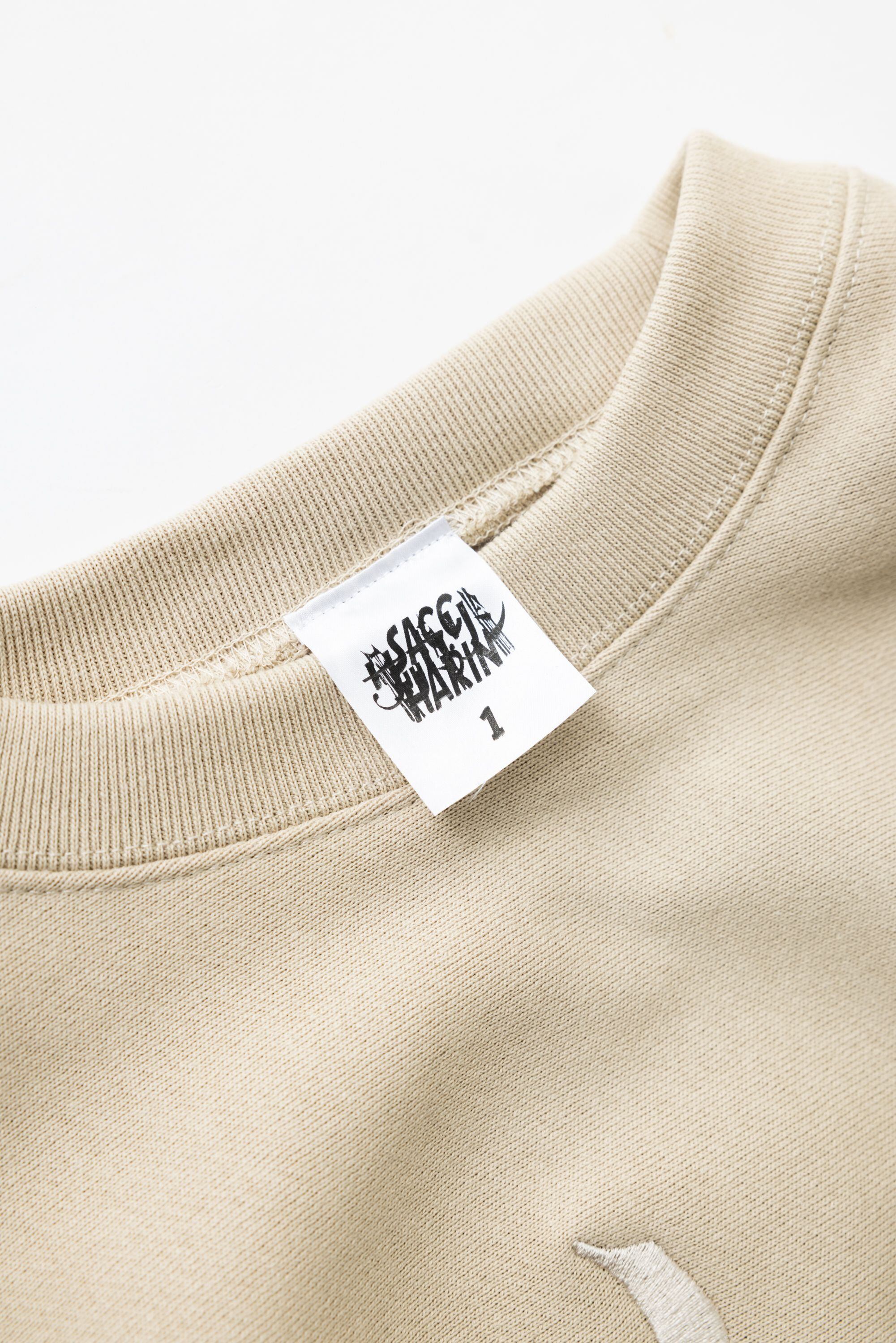 裏毛仕様でほぼ1年中(夏以外)着れるエースと化します。"物販界隈"ではなかなか取り扱わないであろう上質コットン使用。コシがあり、しっとりと滑らかで柔らかい素材感。この素材により唯一無二のドレープ感が生まれてます。生地目を横取りしサイドパネルのリブ仕様となっているため、型崩れしにくく、洗うほどにタフになり、着こむほどに独特の風合いとエイジングが楽しめます。ミドルな着丈にたっぷり肩、身幅と言わずもがなの黄金バランス。特筆すべき点はデザイナーArata Takabatake(Margt)が直筆で描き、生み出した新たなsaccharin LOGOのレトロモダンな風格。そして元が取れそうにないであろう程の贅沢刺繍。文句つけられませんでした。以上。数量限定。今回も再販はしませんので、saccharinの歩みをリアルタイムで纏いたい方よろしくどうぞです。