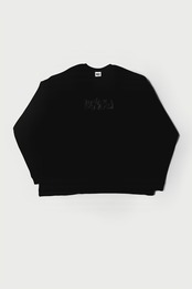 ブラック×ブラックの配色は上品さとクールさを同居させる。さりげなくも存在感のある趣度スペシャル級な一枚。フロント部分には肉厚な刺繍が施され、タイポグラフィを用いたデザインをより際立たせるカラーリングもこだわり。